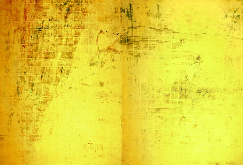 Makoto Fujimura, Sacrificial Grace; Mineral Pigments and Gold on Kumohada; 1997.
