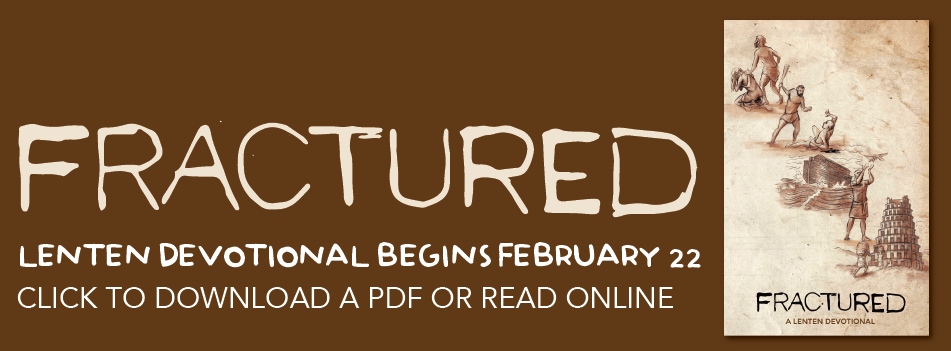 This coming Sunday at Eastbrook Church we begin a new preaching series entitled “Fractured.” This will be the second of a two-part series on Genesis, chapters 1-11. This series explores Genesis 4-11, picking up where our earlier series, “In the Beginning,” left off. Genesis is a book of beginnings, setting the stage for all that comes afterwards not only in that book but in the entire Bible. Each of these messages will explore the reality of a humanity’s fracturing from God and how we see that in each descent of the Fall through these stories. Each of these early stories speak of our need for God and leads us through a season of lament and repentance consonant with the season of Lent. This series is also accompanied by our annual devotional written by members of Eastbrook Church.