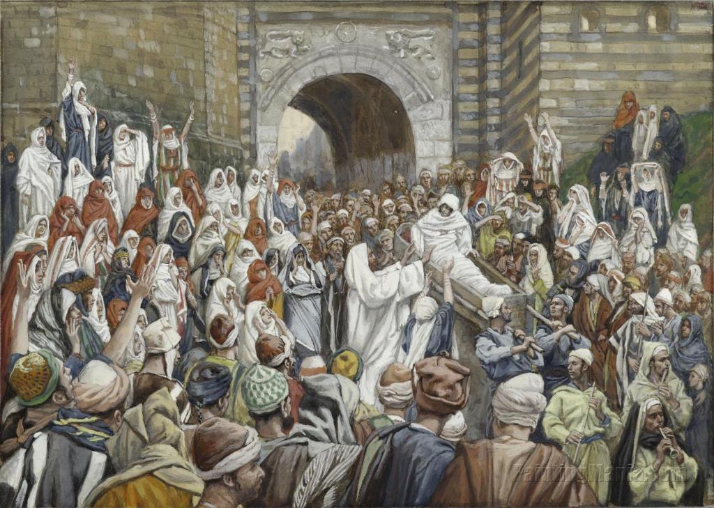11 Soon afterward he went to a town called Nain, and his disciples and a great crowd went with him. 12 As he drew near to the gate of the town, behold, a man who had died was being carried out, the only son of his mother, and she was a widow, and a considerable crowd from the town was with her. 13 And when the Lord saw her, he had compassion on her and said to her, ‘Do not weep.’ 14 Then he came up and touched the bier, and the bearers stood still. And he said, ‘Young man, I say to you, arise.’ 15 And the dead man sat up and began to speak, and Jesus gave him to his mother. 16 Fear seized them all, and they glorified God, saying, ‘A great prophet has arisen among us!’ and ‘God has visited his people!’ 17 And this report about him spread through the whole of Judea and all the surrounding country.”